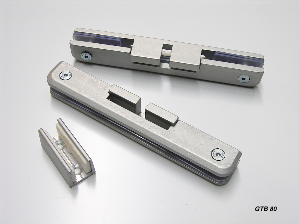 Eine ausführliche Montageanleitung liegt dem Produkt bei. GTB 100 Befestigung durch "Schwalbenschwanzfräsung" im Glastürblatt. GTB 80 Befestigung durch Verschraugung im Glastürblatt.