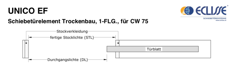 Eclisse Schiebetür Unico EF 200cm Ständerwand UK 75mm