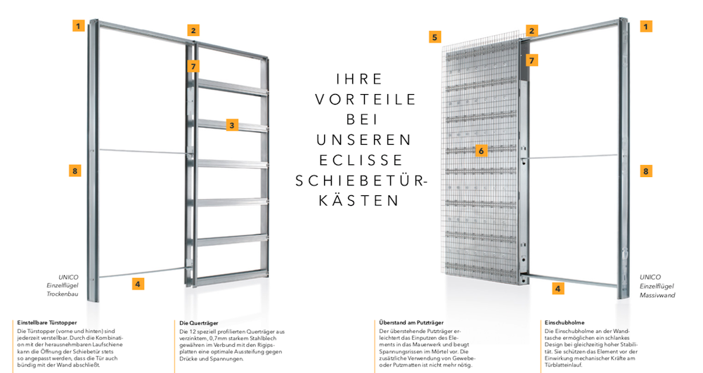 Der Eclisse Schiebetürkasten Unico EF ist ein klassisches Einbauelement für Schiebetüren in Ständerwandkonstruktionen.
