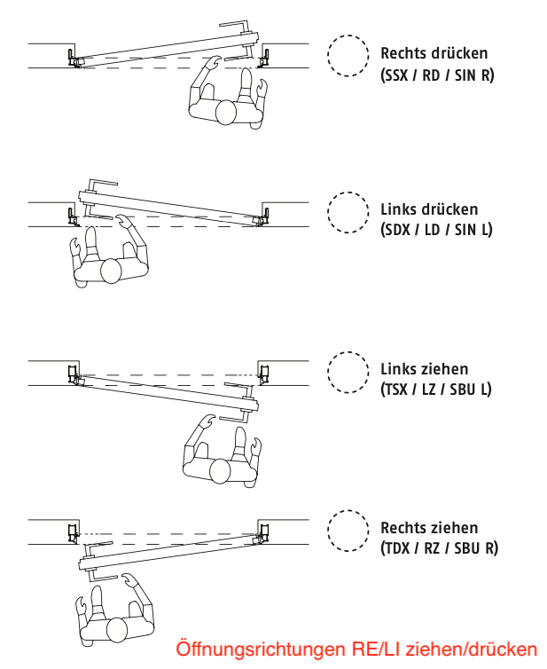 Verfügbare Öffnungsrichtungen: Rechts drücken, Links drücken, Rechts ziehen, Links ziehen (Siehe Bilderklärung Produktbilder)