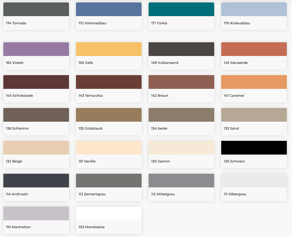 Farbe: in 26 verschiedenen Farben erhältlich