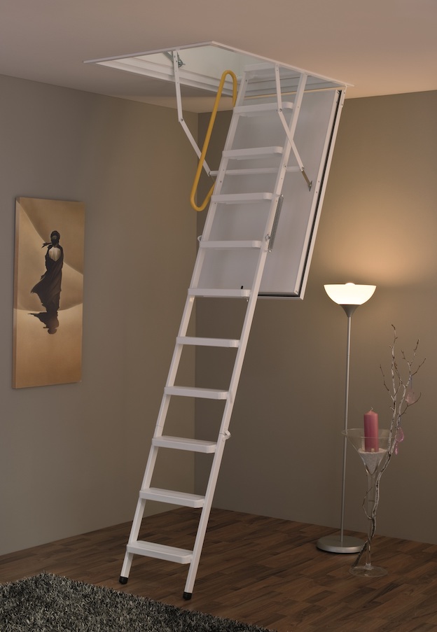 Die Treppe ist in verschiedenen Größen (Rohbaumaßen) verfügbar. Das Produkt verfügt über einen serienmäßigen Sicherheitshandlauf, versenkte Schaniere und einen 65mm starken Isolationsdeckel. Optional kann ein zusätlicher Oberdeckel für noch bessere Isolierung und Staubschutz hinzubestellt werden.