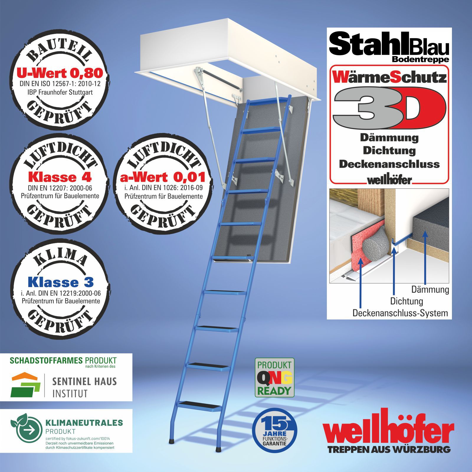 Produktinformationen "Wellhöfer Bodentreppe StahlBlau mit WärmeSchutz WS3D"