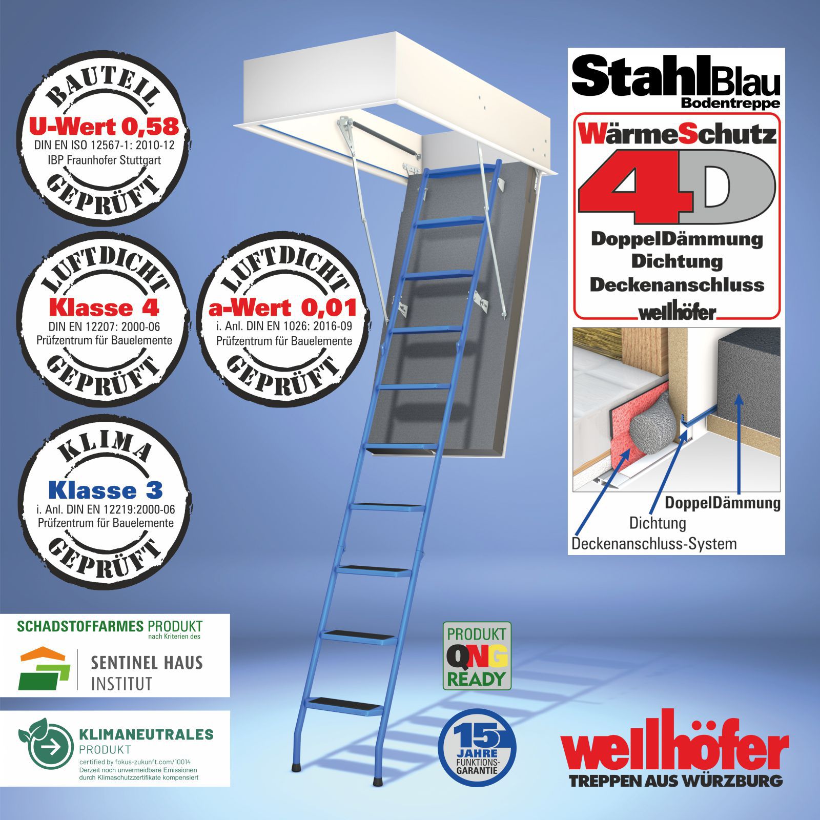 Produktinformationen "Wellhöfer Bodentreppe StahlBlau mit WärmeSchutz WS4D"